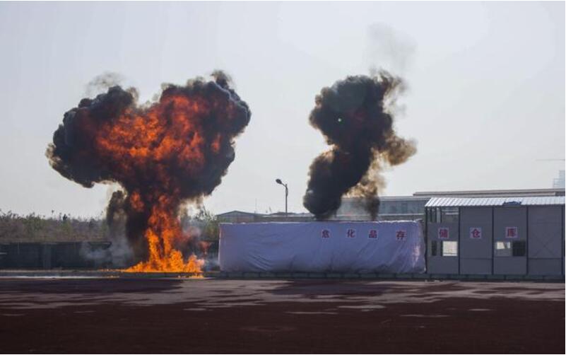 "Bành", kèm theo một tiếng nổ lớn, một "kho hóa chất nguy hiểm" nằm tại ngã tư đường Quảng Cổ số 3 và đường Khúc Doanh trong Khu công nghệ cao Đông Hồ đã phát nổ. Còi báo cháy vang lên, hơn một nghìn lãnh đạo địa phương, sinh viên đại học và nhân viên doanh nghiệp cách đó hàng trăm mét đang lo lắng nhìn hiện trường vụ cháy, có ba "xe tăng nhỏ" đang phát ra sức mạnh khủng khiếp.
